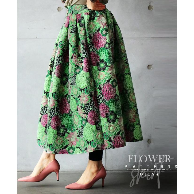 ロングスカート フレア ジャガード 花柄 グリーン パープル 甘やかな色彩 Otona 40代 50代 60代 Tko Otona 通販 Yahoo ショッピング